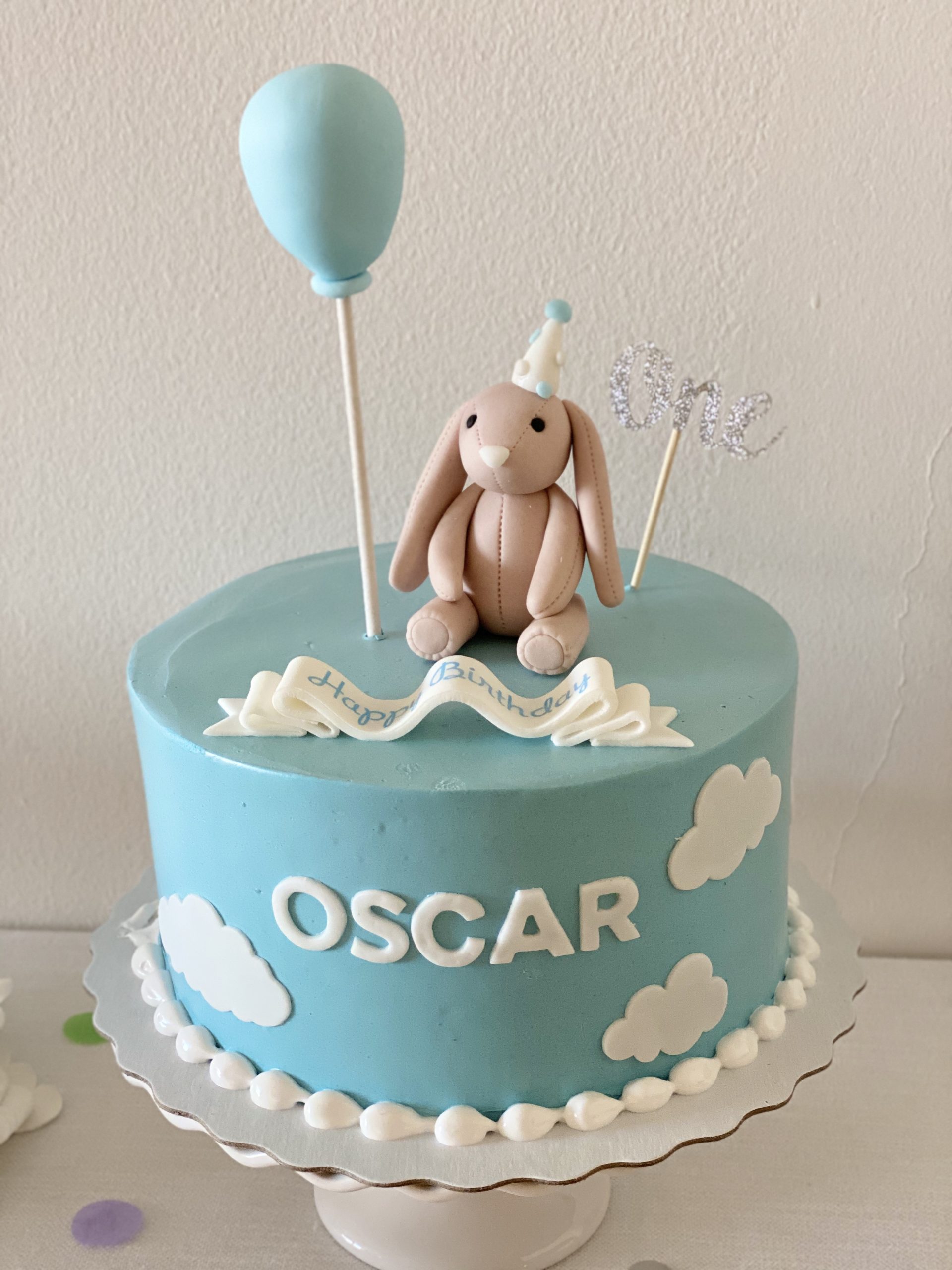 To celebrate Oscar’s first birthday I really wanted a special cake! Something I could customize eventually. After a lot of researches, I decided to go with Empire Cake bakery! Great choice! They were super fast to answer all of my questions. Very easy to work with! This year, we went with something pretty simple; a blue cake with few white clouds and topped with the cutest little bunny! I couldn’t have hope for a better cake! Flavor wise we choose hazelnut which was delicious.