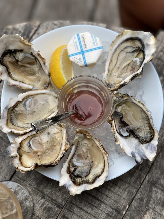 Just with a drink or to start your meal, I recommend their daily fish rillettes. Always so fresh and tasty! I love the way they served this dish – in a little sardines can – We also like to share some of their oysters!